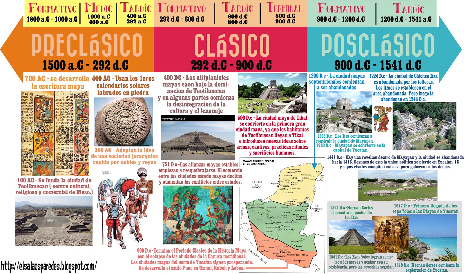 40,000 A.C. Migración a América de los ancestros de los mayas.3114 A.C. el 10 de agosto, el mundo es creado, según la Cuenta Larga maya.2600 A.C. La civilización maya se empieza a formar. Cuello,